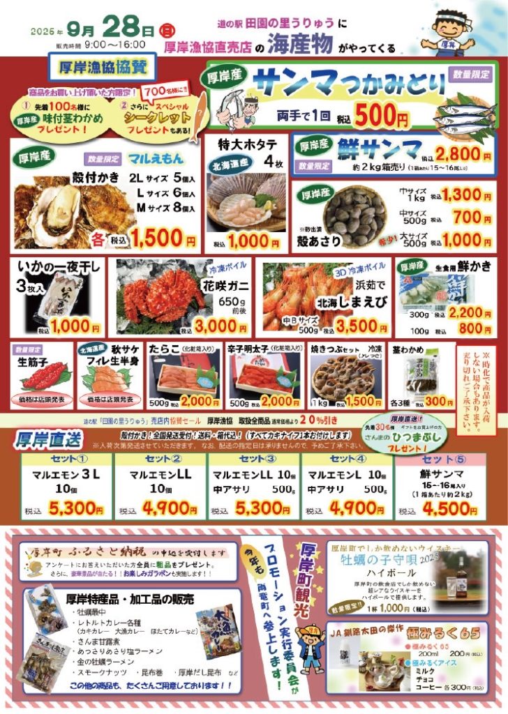 また、今年は厚岸物産展も同時開催するということで、空知で厚岸町特産物を買うことができる貴重な機会です!